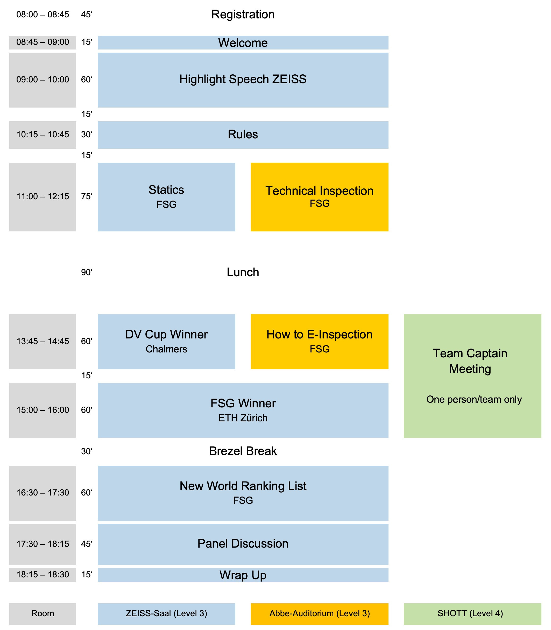 The yearly FSG academy event offering support and information to Formula Student teams will be held on 25th Oktober 2025 at ZEISS Forum in Oberkochen.